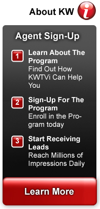 Through an interactive interface, Keller Williams Associates will be able to join the network and maintain their presence 24/7. Your listings, or your Agent Profile will be displayed on the network specific to their demographic location and through the KWTVi website increasing the market share you reach. Network membership is month to month with no long term commitments. Your membership today will be rewarded with a complimentary starter pack and free unlimited listings for the first month. See terms and conditions for further details.